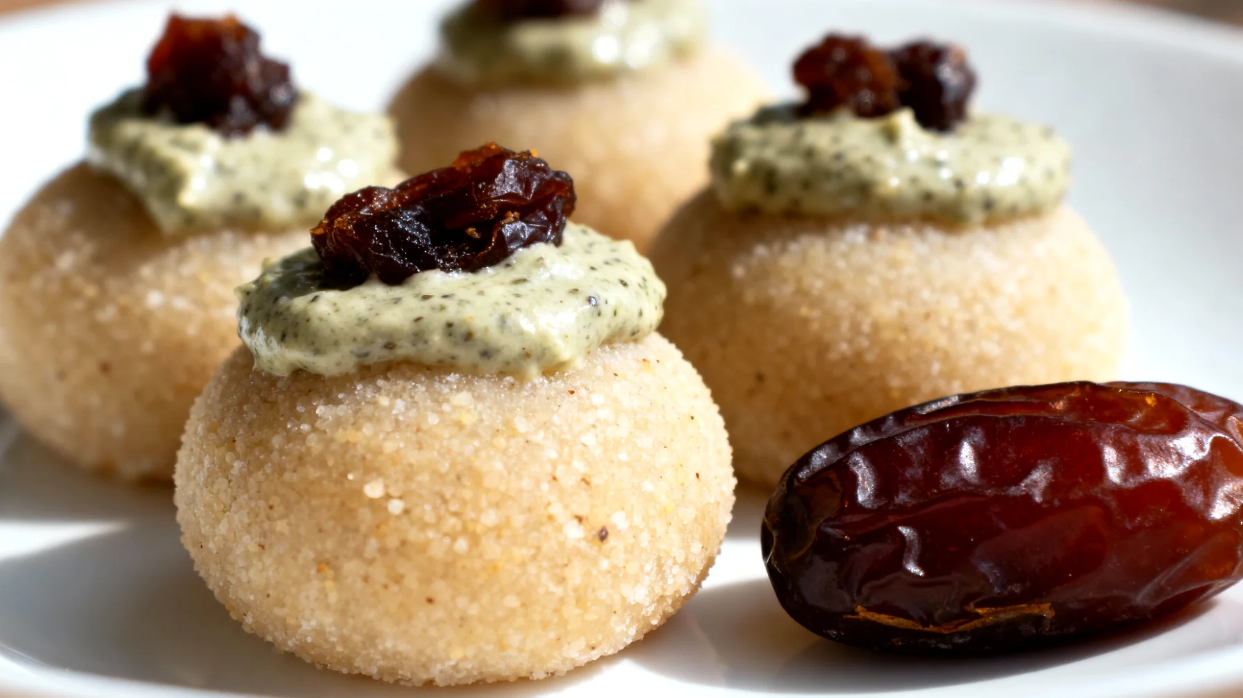 Nella crema che farcisce i mochi, i datteri svolgono una doppia funzione: dolcificano naturalmente e forniscono energia rapidamente disponibile grazie al loro contenuto di zuccheri semplici. Il fruttosio e il glucosio presenti nei datteri vengono assorbiti velocemente dall’organismo.